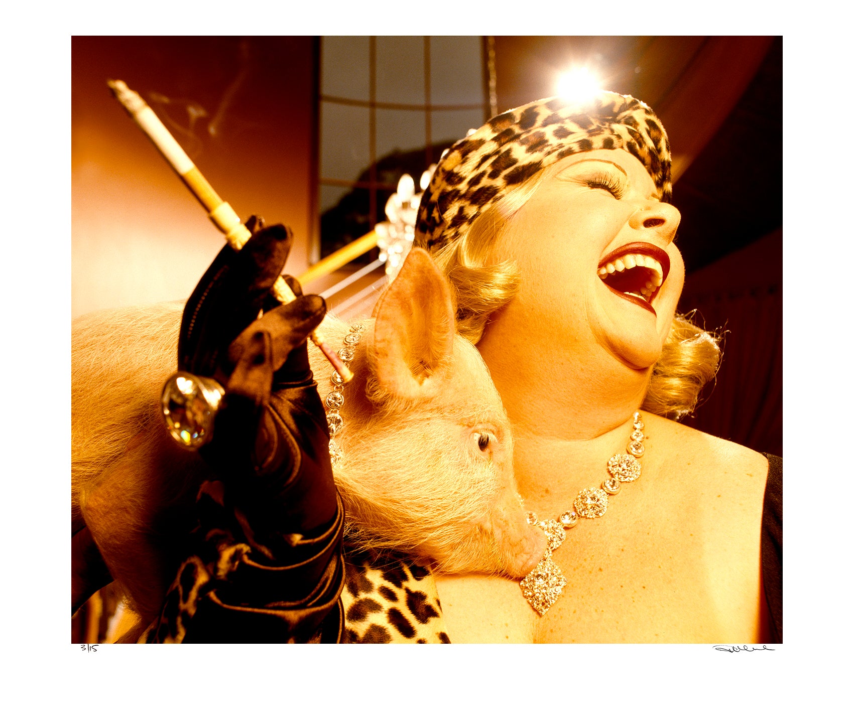 This shoot was also a turning point for Who Weekly. It marked the magazine’s first major editorial production, signalling its ambition to rival the gloss and scale of international titles. A full crew was assembled – including four pedigree piglets and the legendary French make-up artist Régis, famed for creating David Bowie’s Ziggy Stardust persona. Mid-shoot, a television crew burst onto set to film the opening of This Is Your Life, surprising Magda in front of cast, crew and pigs alike.