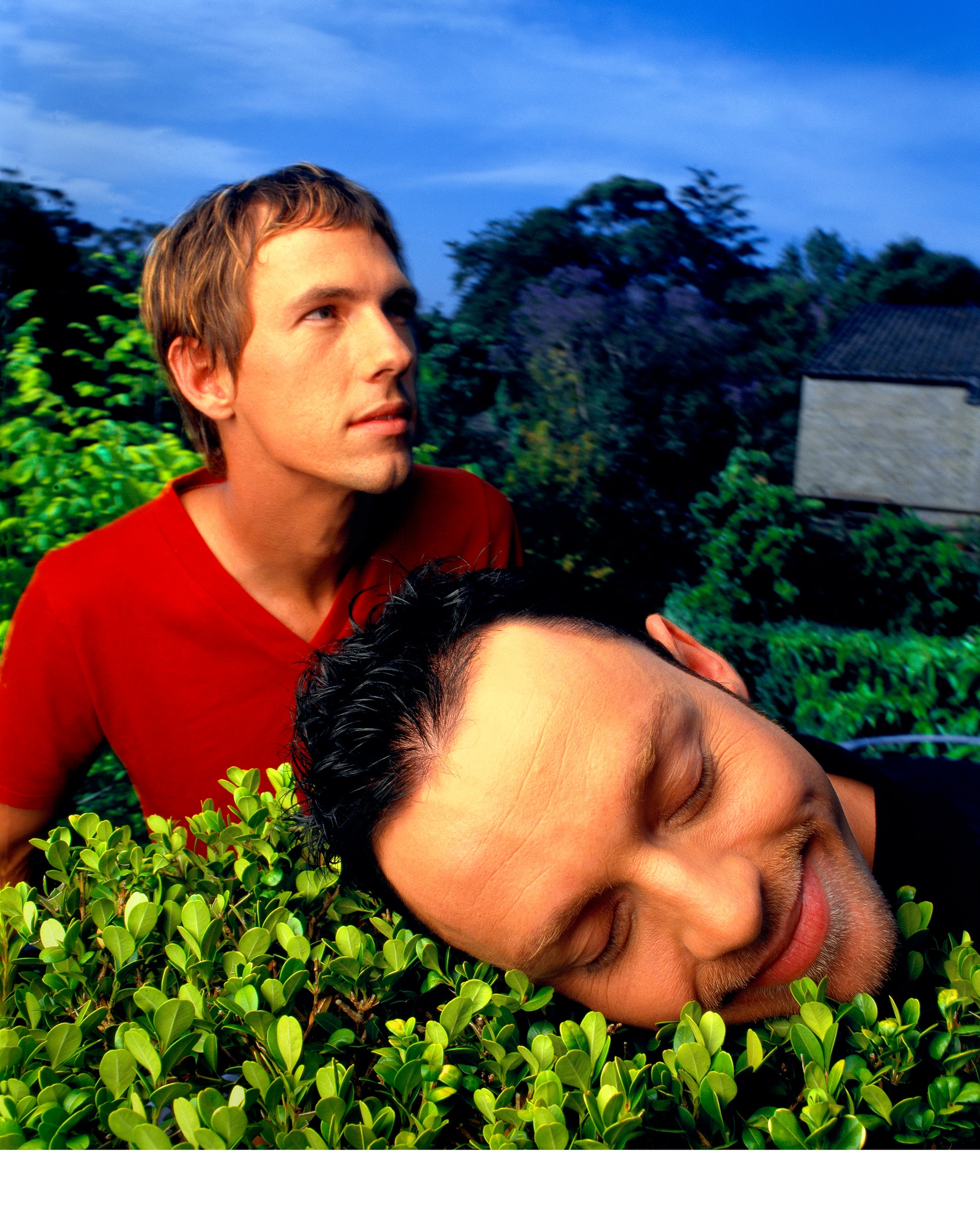 They were a joy to work with – open, playful and instinctively creative. Here, Darren rested his head gently on a bush and smiled – a spontaneous gesture that gave the image its warmth and intimacy. At the time, conceptual portraiture like this was uncommon in Australian magazines, and editors often demanded a safer option. This frame stood out because it captured not just appearance, but character – two young artists on the cusp of extraordinary success.